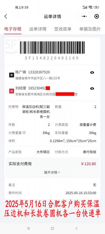 • 第二次購(gòu)買5月2日濟(jì)寧客戶快遞單