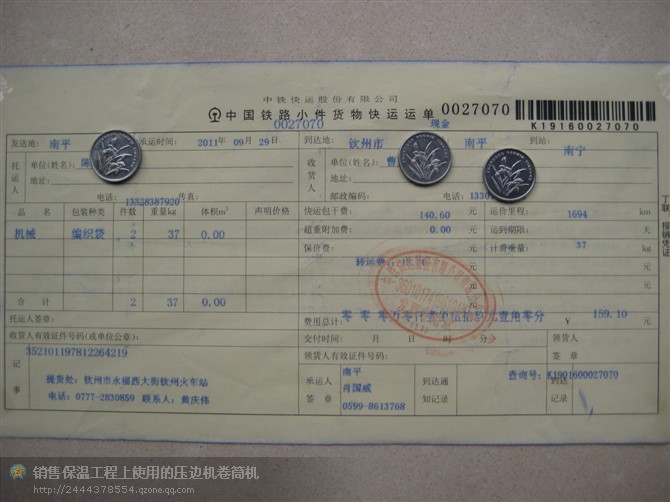 • 8月27日東營奕諾佳石油工程公司快遞單